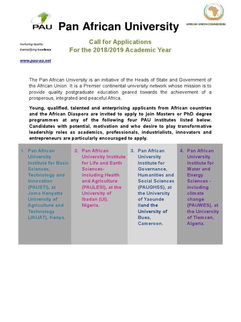 Pan African University Call For Applications For The 2018 2019 Academic Year Engineering Academia