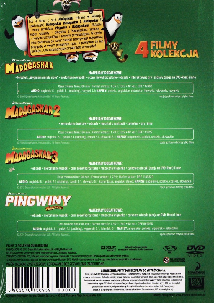 Madagaskar Trylogia 1 2 3 Pingwiny Z Madagaskaru B 7016927380 Oficjalne Archiwum Allegro