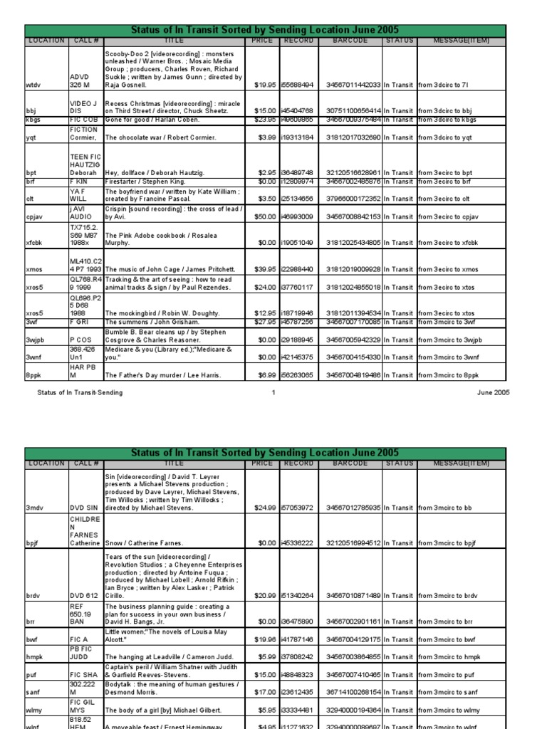 Status Of In Transit Sorted By Sending Location June 2005
